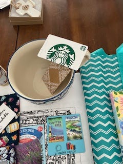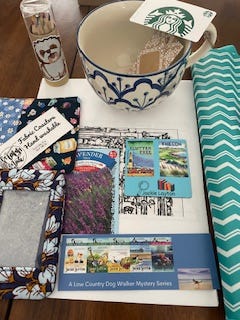This week, I’m speaking to a group at a retirement community. I’ll have some swag to give people, and there will be a giveaway with items related to my stories.